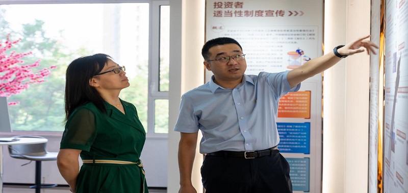 活動(dòng)伊始,恒銀期貨總經(jīng)理湯志江帶領(lǐng)和講解下,河北經(jīng)貿(mào)大學(xué)副校長杜紅梅、金融學(xué)院黨委書記魏健、金融學(xué)院院長楊雪美、金融學(xué)院黨委副書記王薇、金融學(xué)院副院長竇麗琛、金融學(xué)院就業(yè)工作負(fù)責(zé)人高鵬飛等一行領(lǐng)導(dǎo)參觀了恒銀期貨總部的辦公區(qū)和恒銀期貨投資者教育基地,深入了解了公司的組織架構(gòu)、業(yè)務(wù)模式、企業(yè)文化、發(fā)展戰(zhàn)略及黨建扶貧等工作。通過參觀,經(jīng)貿(mào)領(lǐng)導(dǎo)對于恒銀期貨的辦公環(huán)境、業(yè)務(wù)模式和發(fā)展前景給予了高度評(píng)價(jià)。