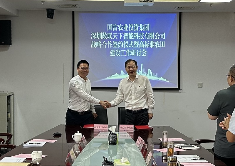 7月2日,國富農(nóng)業(yè)投資集團與深圳數(shù)聯(lián)天下智能科技有限公司簽訂戰(zhàn)略合作協(xié)議,為國富農(nóng)業(yè)投資集團加快培育農(nóng)業(yè)新質(zhì)生產(chǎn)力、打造省內(nèi)一流高標準農(nóng)田建設(shè)項目注入科技新活力。國富農(nóng)業(yè)投資集團黨委副書記、副董事長、總經(jīng)理張立忠,集團黨委常委、常務(wù)副總經(jīng)理馬國棟,集團黨委委員、副總經(jīng)理李其強,及相關(guān)業(yè)務(wù)骨干同數(shù)聯(lián)天下副總裁鄧才良一行進行工作研討并見證簽約儀式。